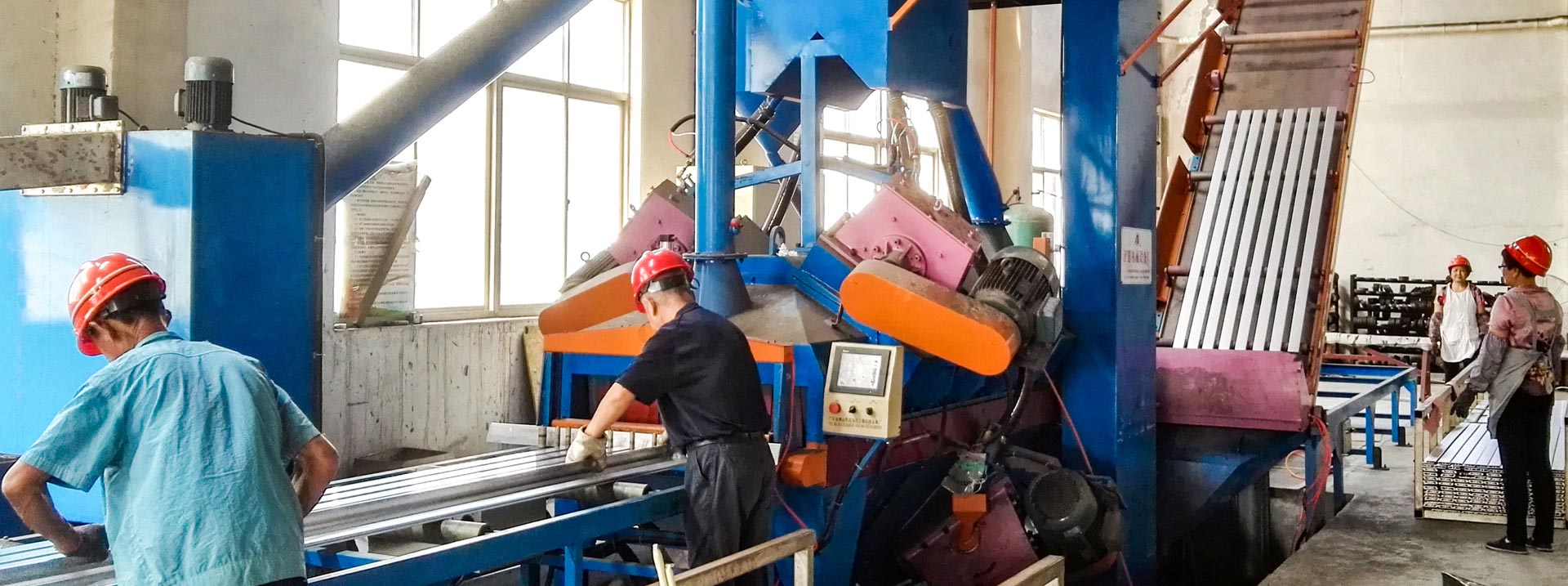 專業(yè)生產多種鋁合金型材及制品的企業(yè),已有二十多年的經驗和歷史。現有鋁型材擠壓設備四套,分別為1800T、1000T、630T、600T擠壓生產配套設備有10m長不銹拋丸機。6m鋁型材表面拋光機,4.5m普拉迪鋁材加工中心,多臺高精度自動切割機,雙頭轉向切割機,備有12m長時效爐。